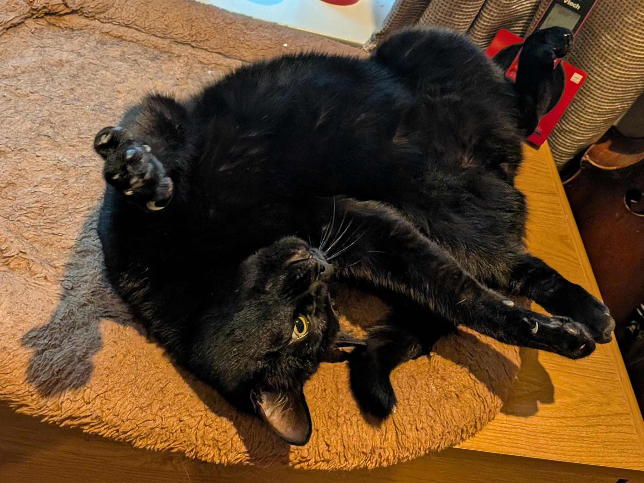 Update from youngest daughter. Her cat Cassie looks pissed because she can't fit that back foot into her basket on the cat tree.