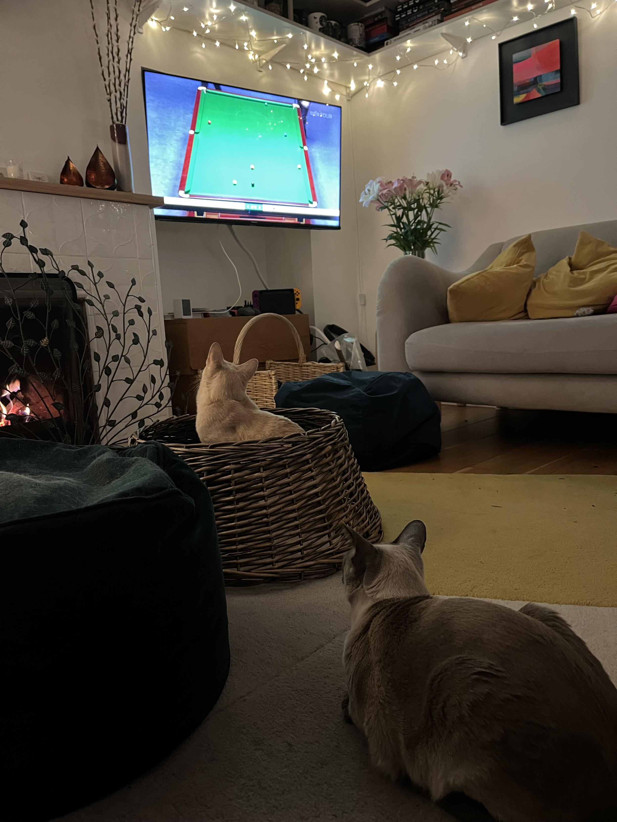 Was hoping to watch a show about engineering and Venice, but snooker had overrun. Cats are fascinated.