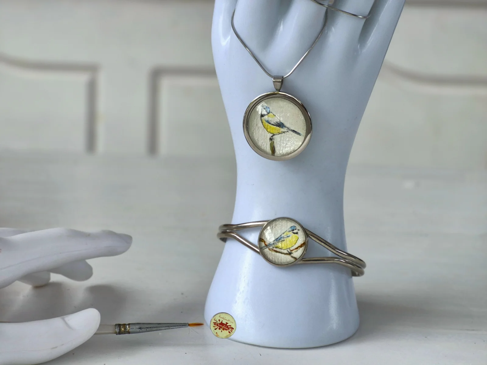 Handgemalter #wandklexschmuck, aber nur das Edelstahl-Medaillon ist noch da und auf #bloomscrolling #miniaturepainting #artShop #fediArt #mastoArt #creativeToots