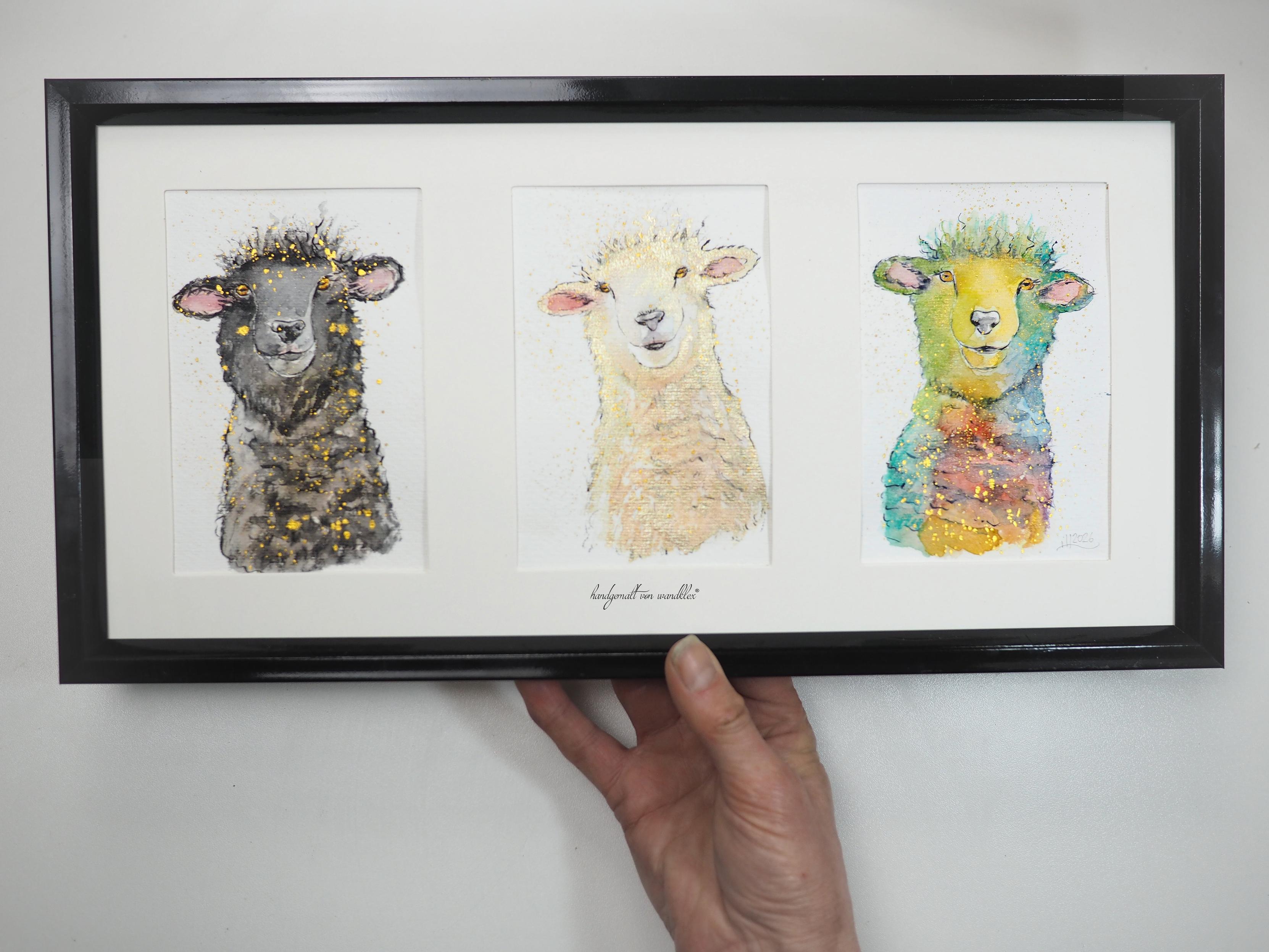 Die drei #wandklex Originale sind eben auf #mammals #sheep #art #watercolor #valais #schwarznasenschaf #sheep #artShop #fediArt #mastoArt #creativeToots #artForSale