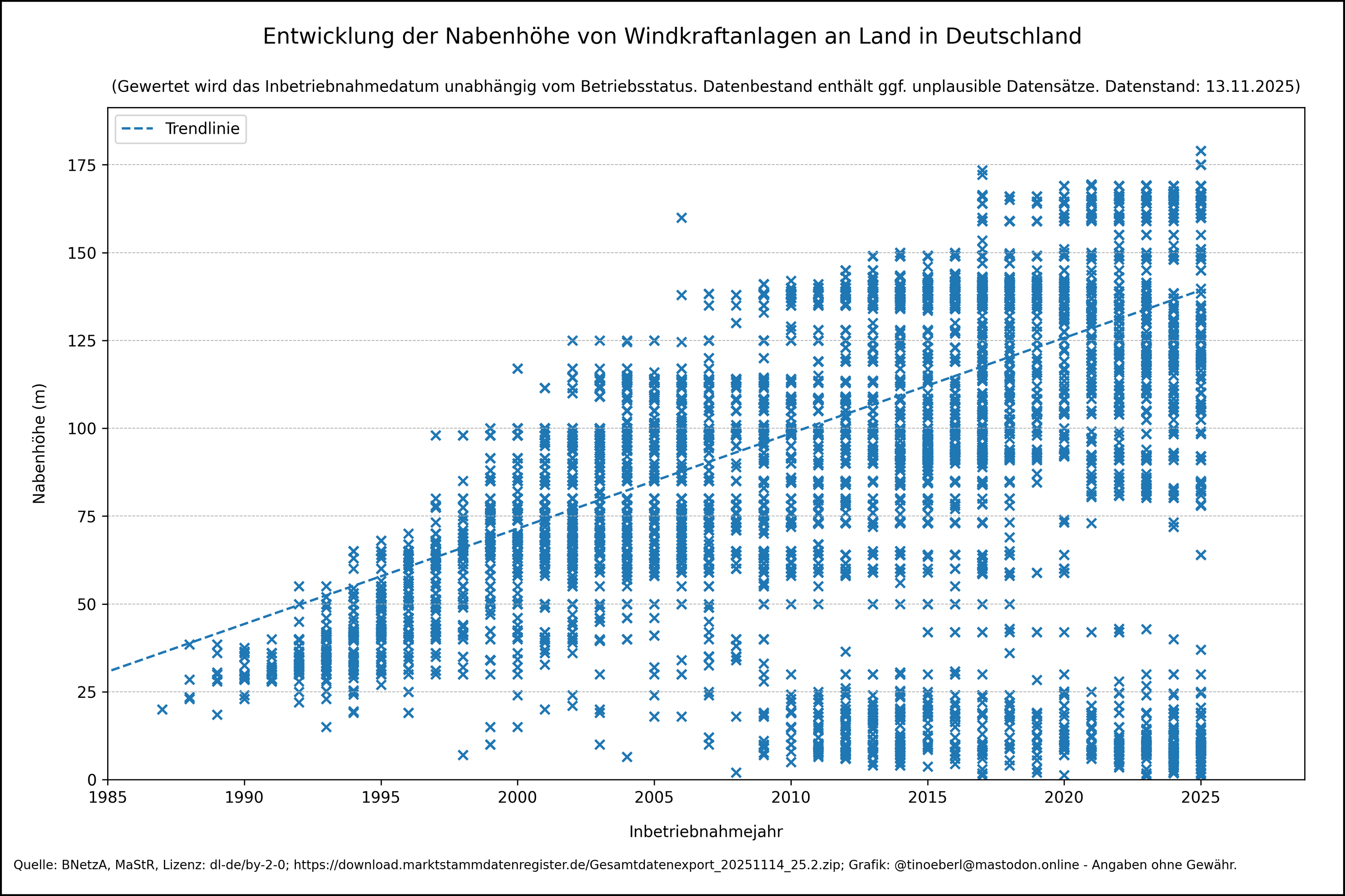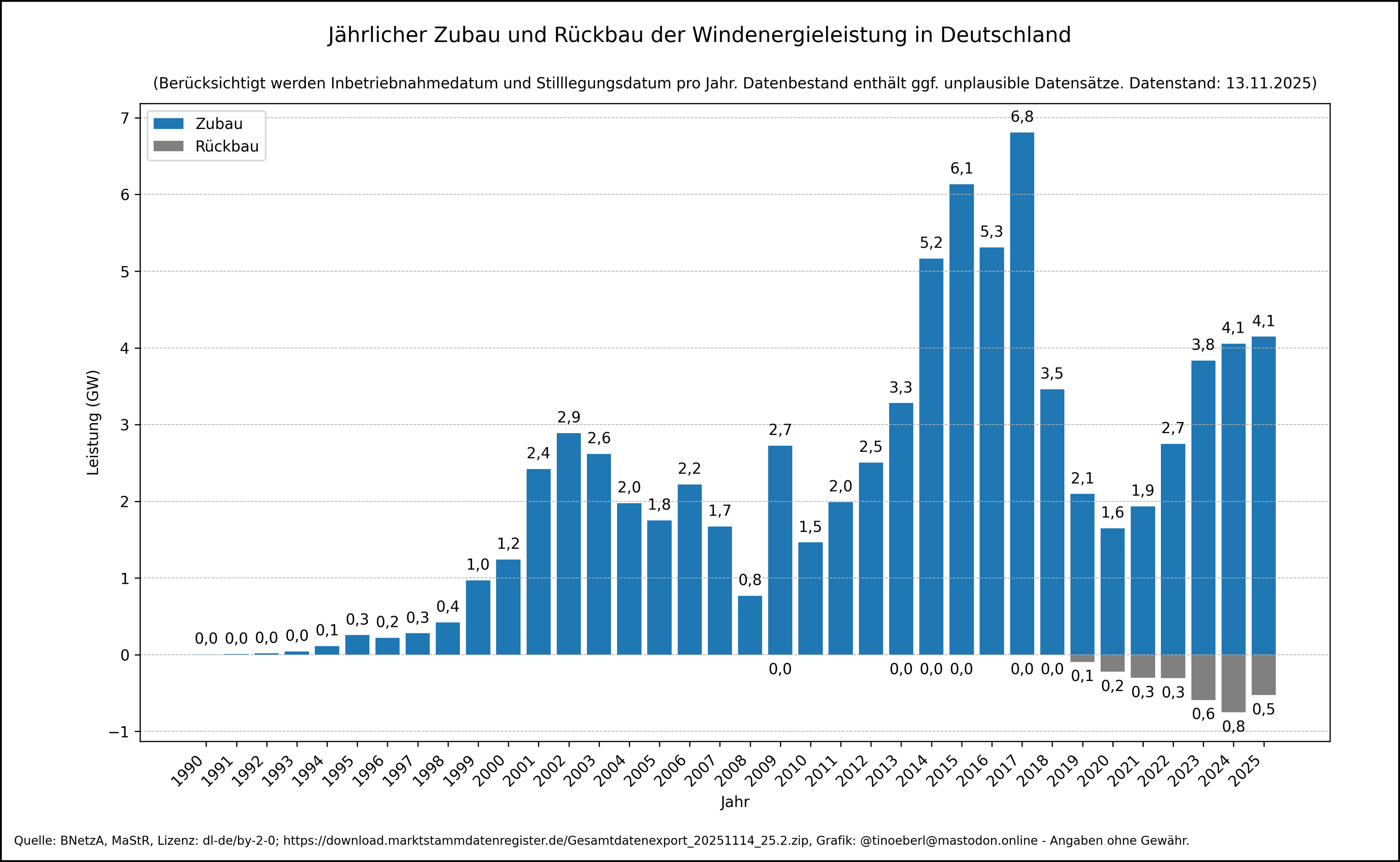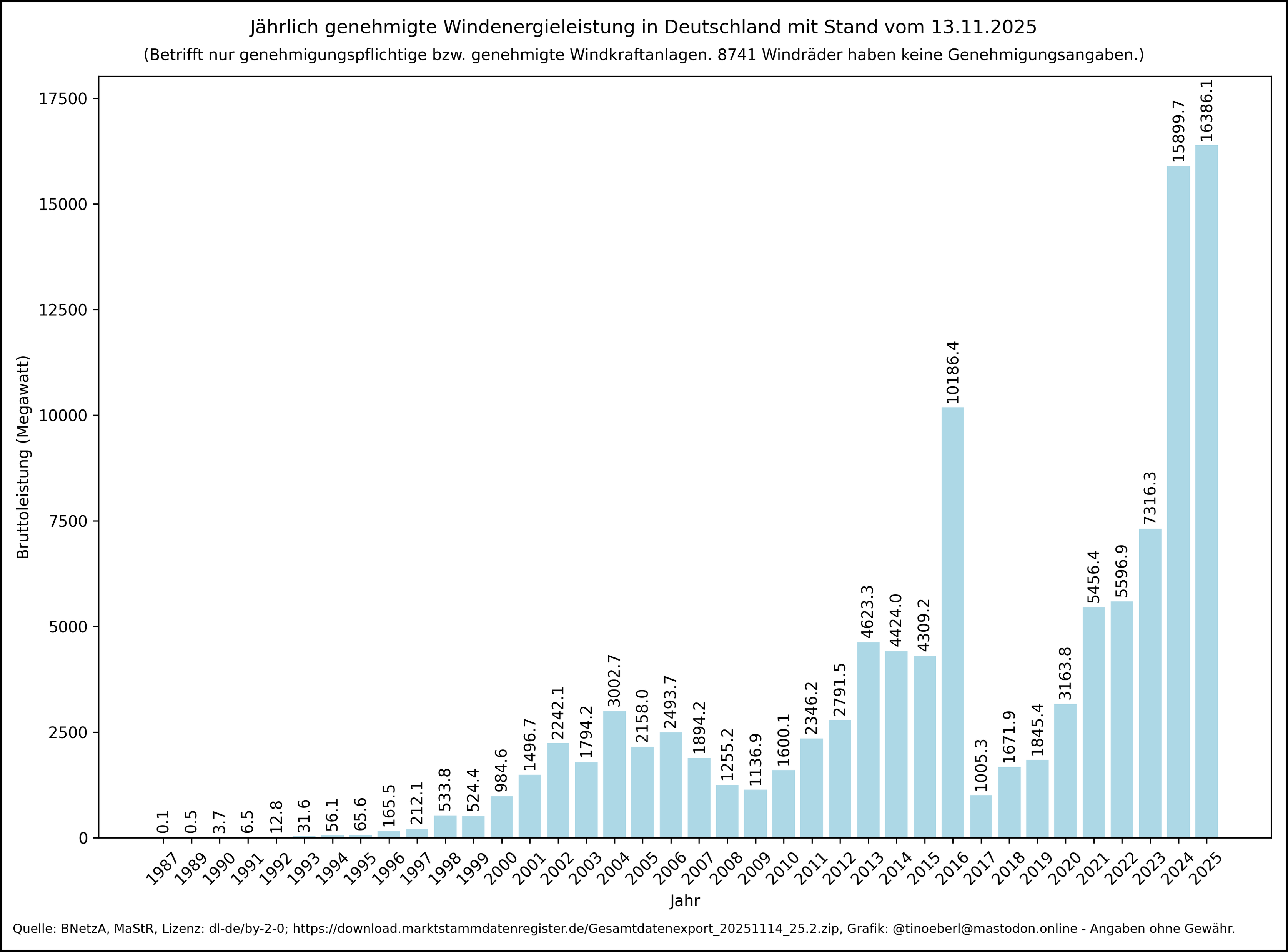 Jährlich genehmigte #Windenergieleistung in #Deutschland mit Stand vom 13.11.2025.