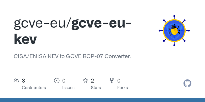 gcve-eu-kev updated — a CISA KEV and ENISA CNW/EUVD to GCVE BCP-07 converter.