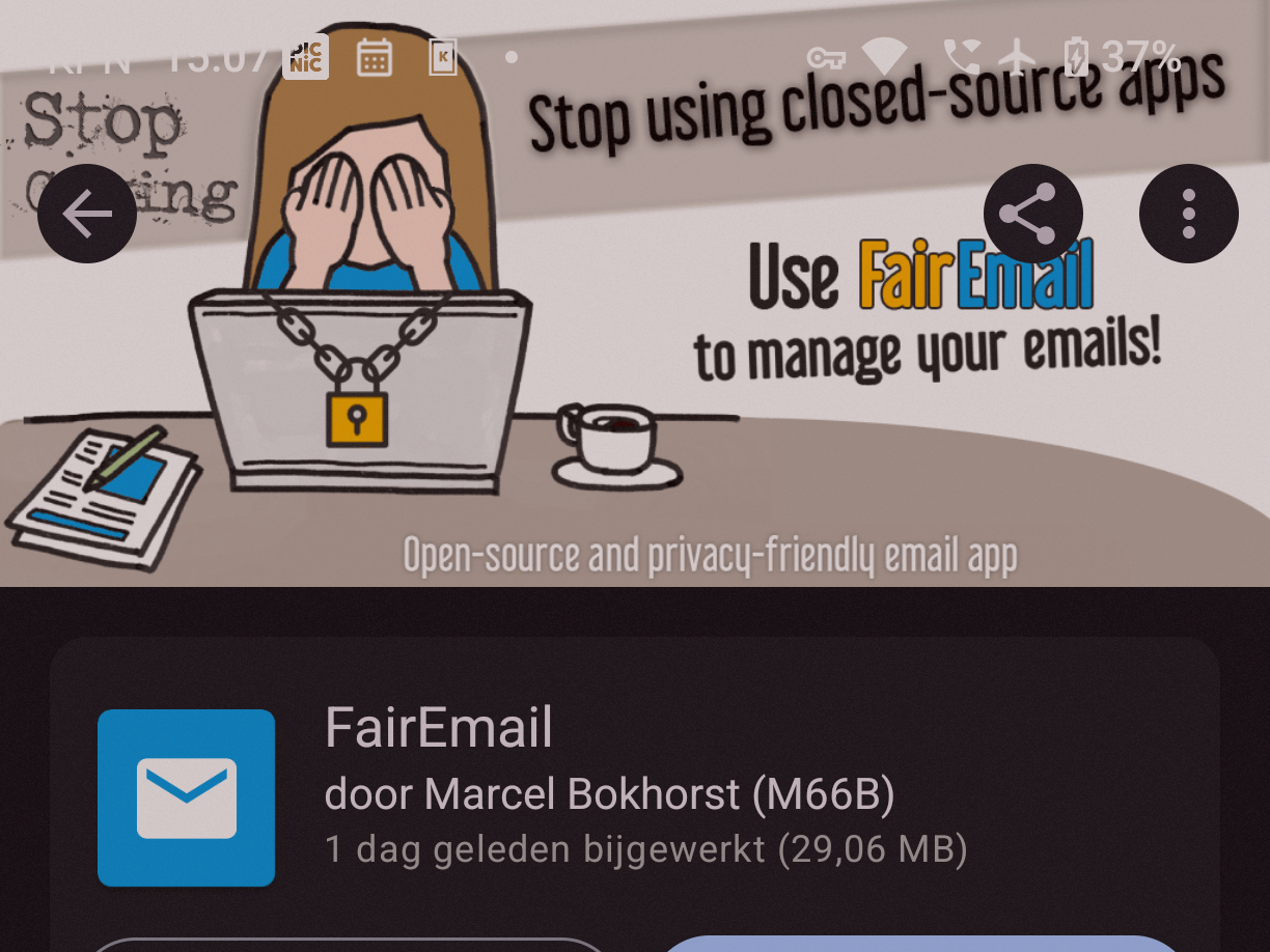 Net een update voor #FairEmail geïnstalleerd. Al vele jaren mn email client voor Android.
