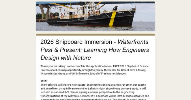 "Opportunity to learn about the #GreatLakes and coastal engineering in Milwaukee."