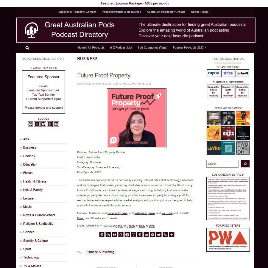 Great Australian Pods Podcast Directory: https://www.greataustralianpods.com/future-proof-property/