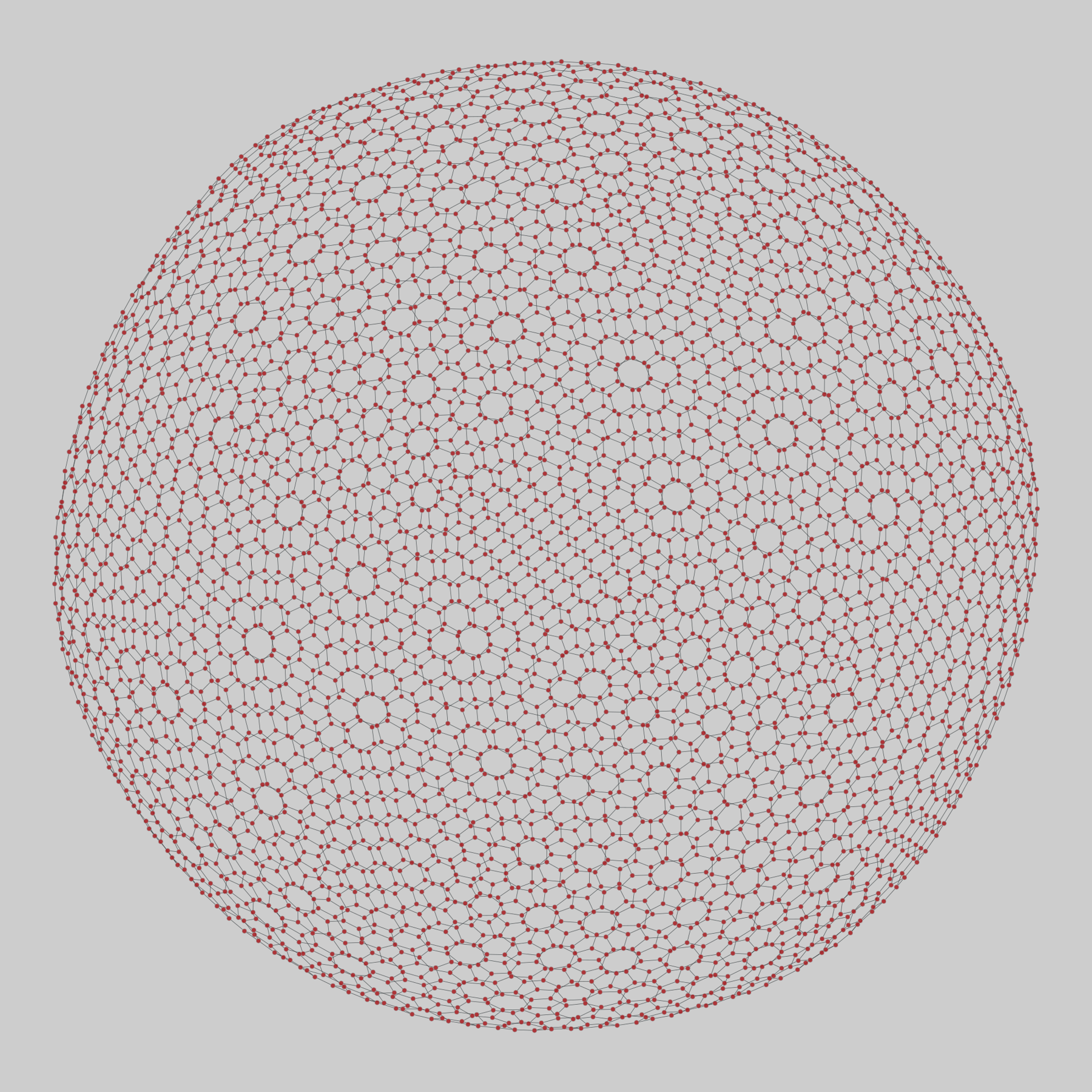 Fifteen networks of carbon atoms and the atomic bonds that connect them within molecules of fullerenes, from 60 atoms up to 6000 atoms. A bond is defined to exist whenever the distance of two atoms is less than 1.5 angstrom.