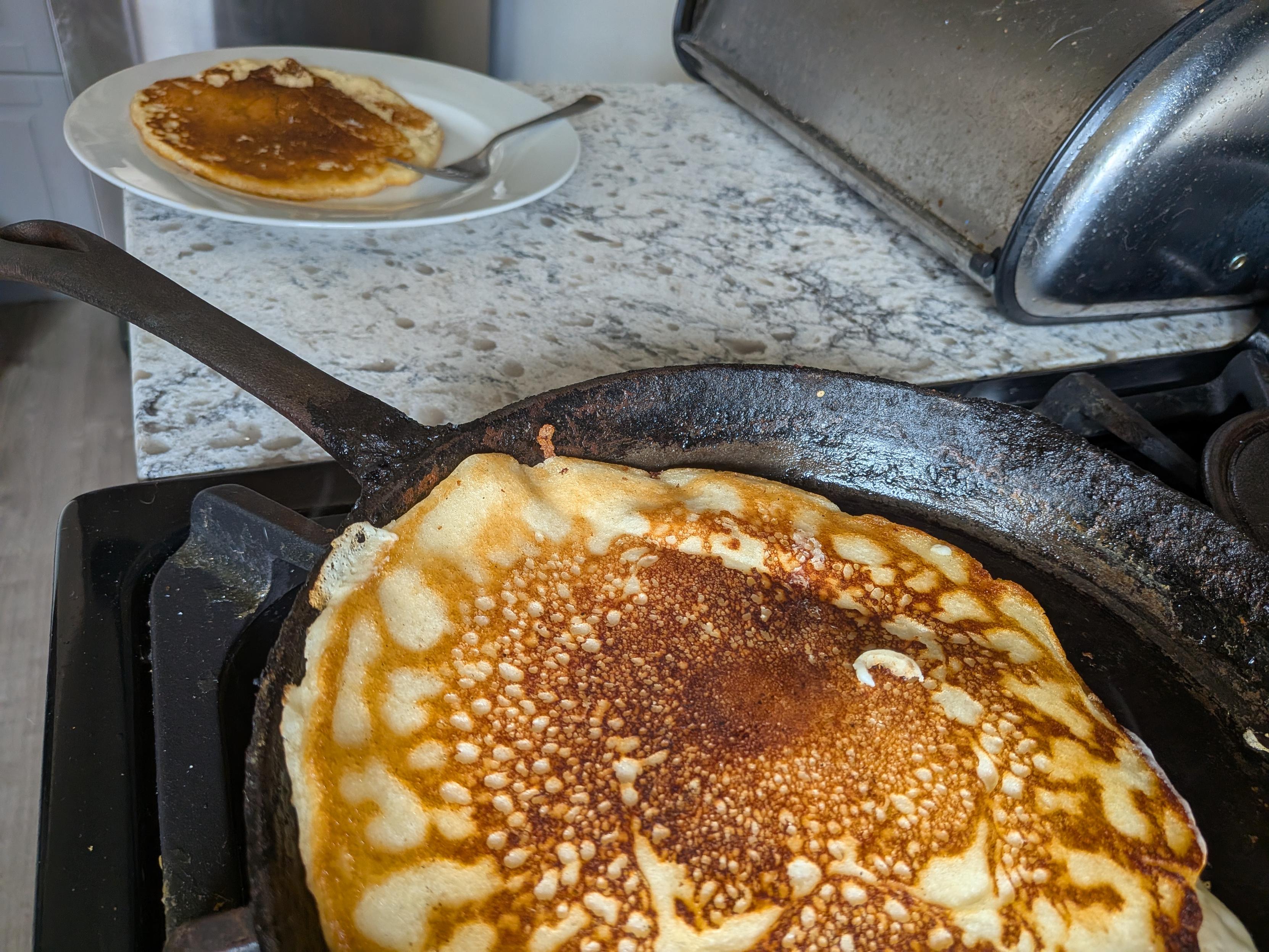 It is Saturday, so breakfast is happening closer to noon and it is pancakes