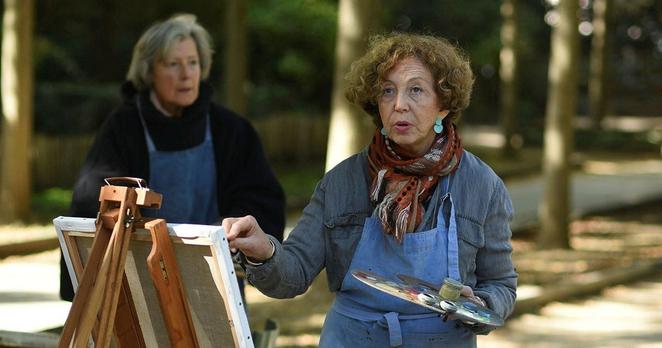 ”Vi är på väg att bli ett fattigt land bland de rika”, säger Eglantine Elkaim, som står och målar i en park i centrala Paris.