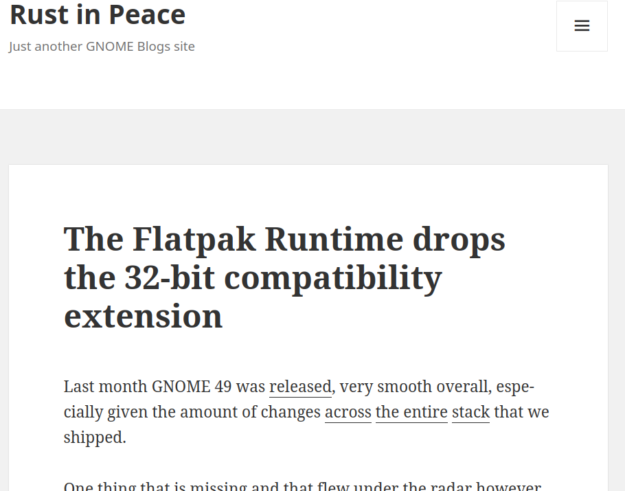#GNOME dropps the 32-bit #Flatpak Runtime compatibility extension: