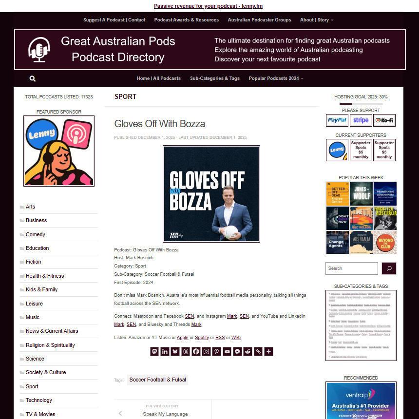 Great Australian Pods Podcast Directory: https://www.greataustralianpods.com/gloves-off-with-bozza/