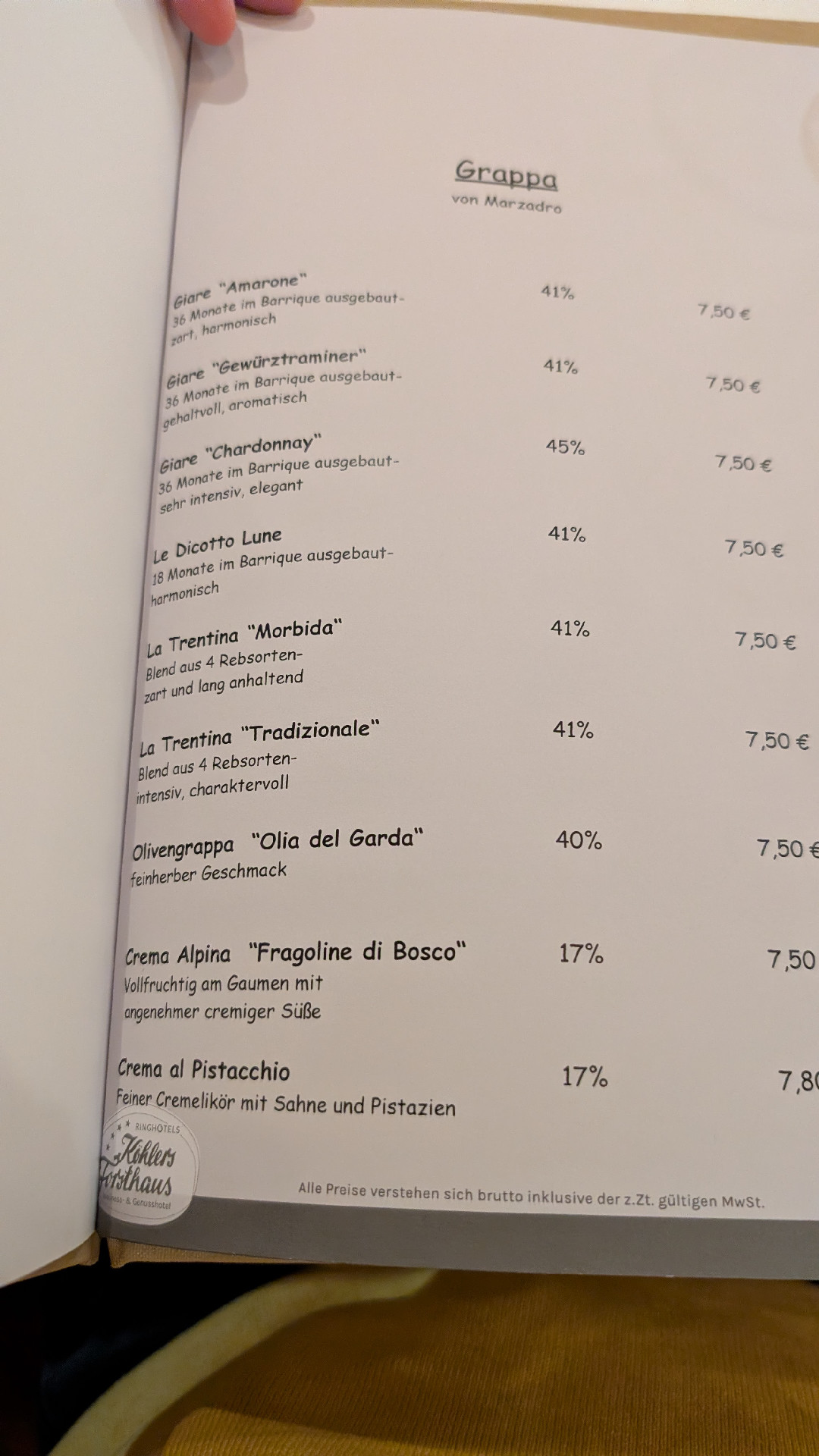 In dem Hotel, das wir gerade bewohnen, gibt es eine separate Karte ausschließlich für Digestifs.