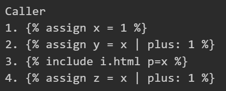 `{% assign x = include.p %} {% # x is string %}`