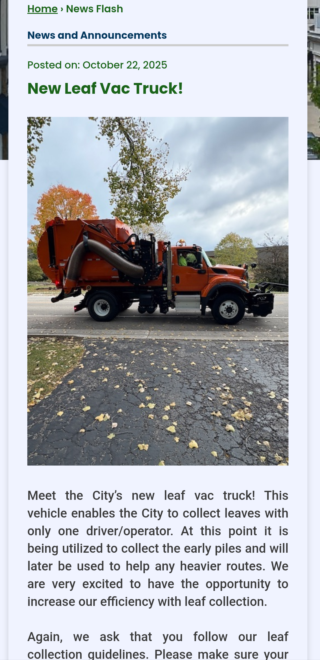 This is the big news in my little town. I saw that truck picking up my leaves around a week ago.