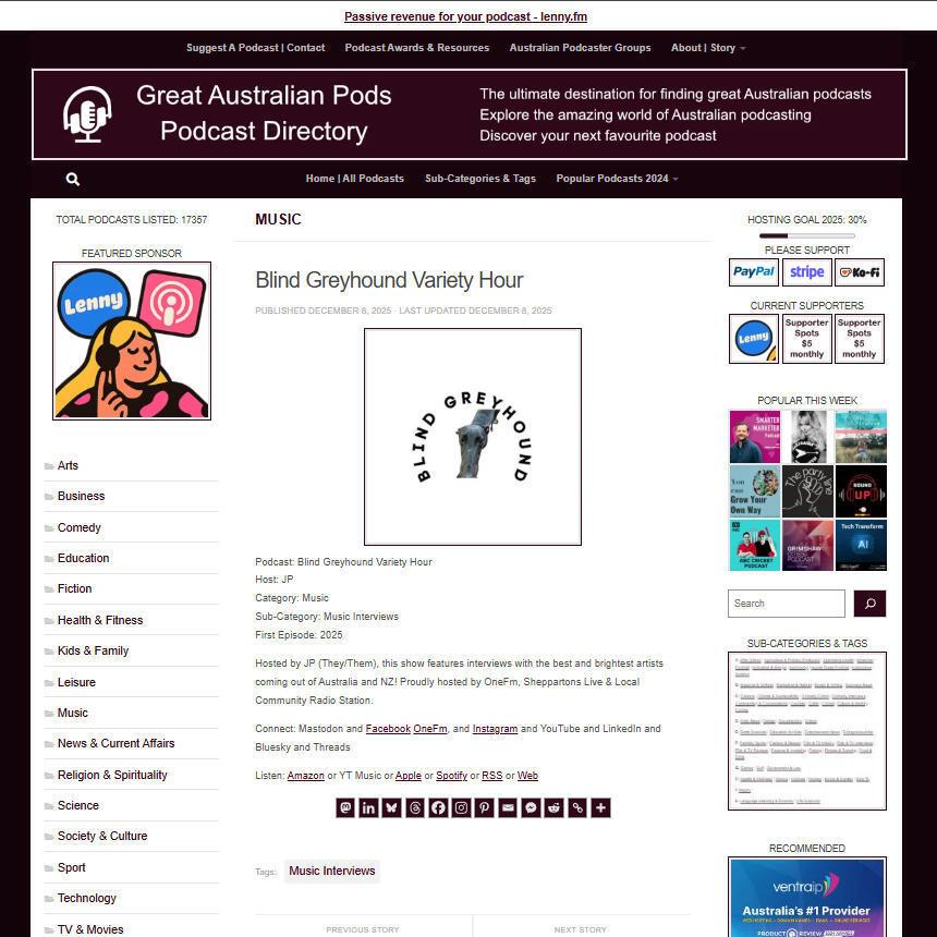 Great Australian Pods Podcast Directory: https://www.greataustralianpods.com/blind-greyhound-variety-hour/