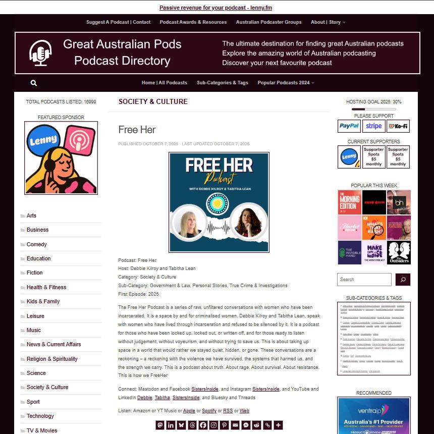 Great Australian Pods Podcast Directory: https://www.greataustralianpods.com/free-her/