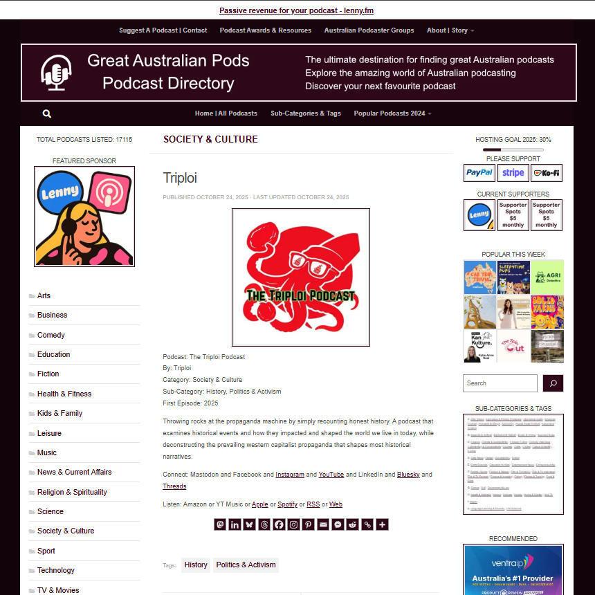 Great Australian Pods Podcast Directory: https://www.greataustralianpods.com/triploi/