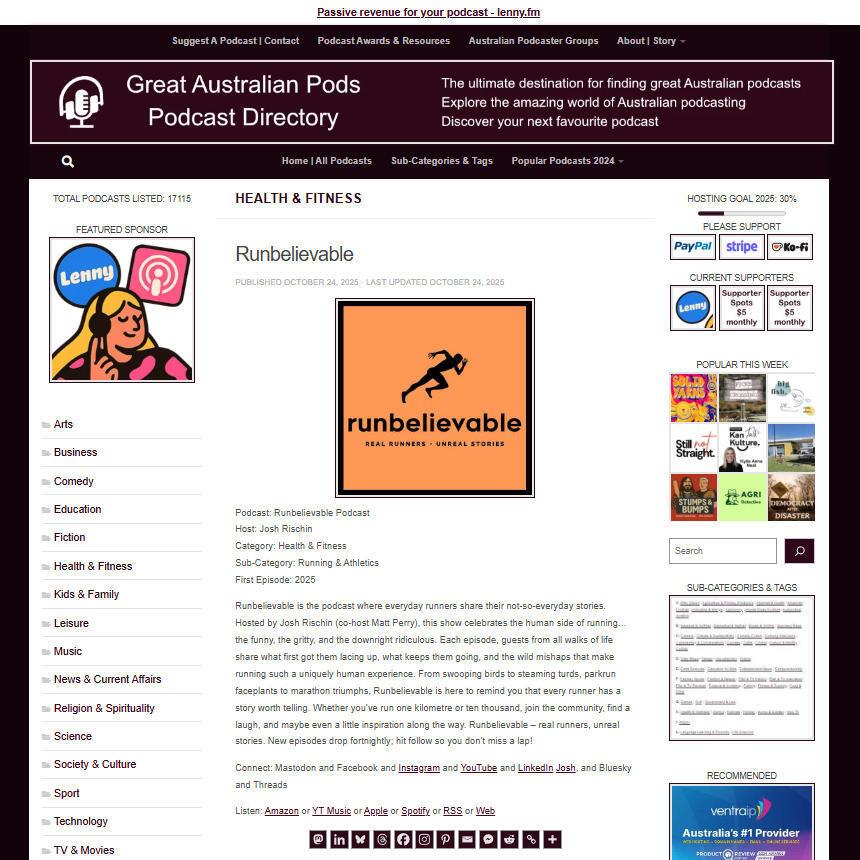 Great Australian Pods Podcast Directory: https://www.greataustralianpods.com/runbelievable/