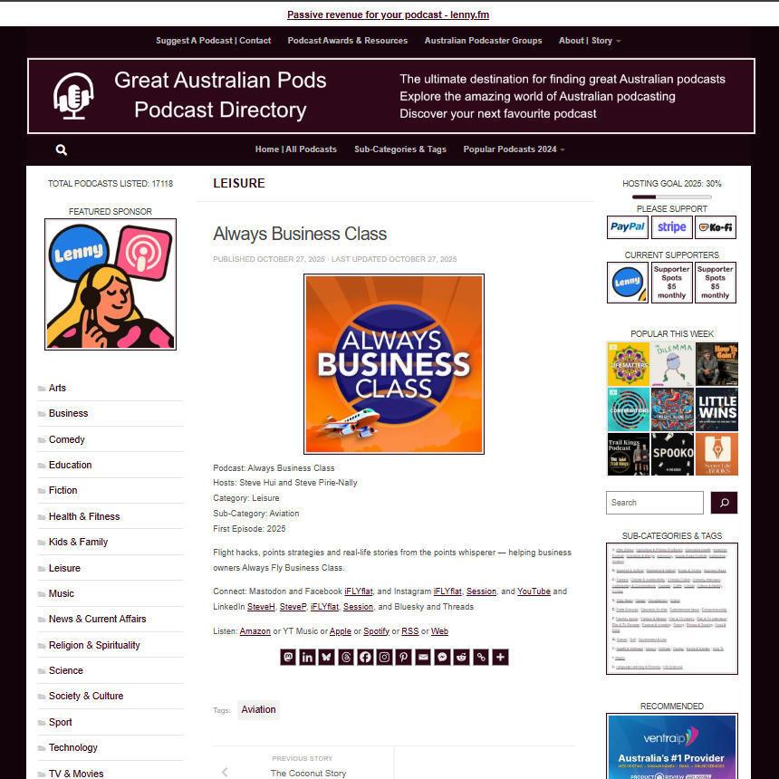 Great Australian Pods Podcast Directory: https://www.greataustralianpods.com/always-business-class/