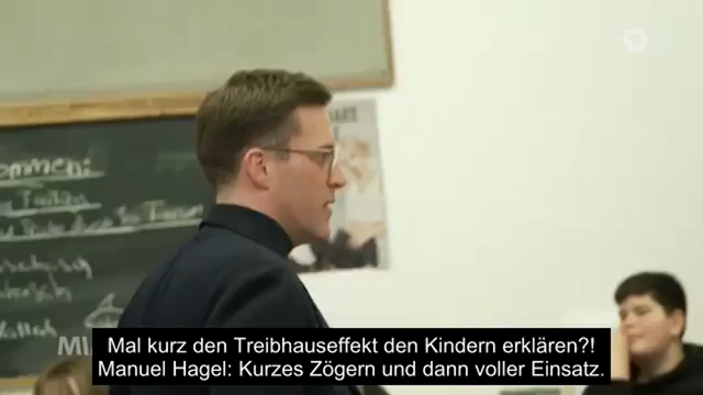 Manuel Hagel, CDU Spitzenkandidat für die Landtagswahl in Baden-Württemberg, erklärt Schülern den Klimawandel. (ARD Mittagsmagazin vom 2. März 2026)
