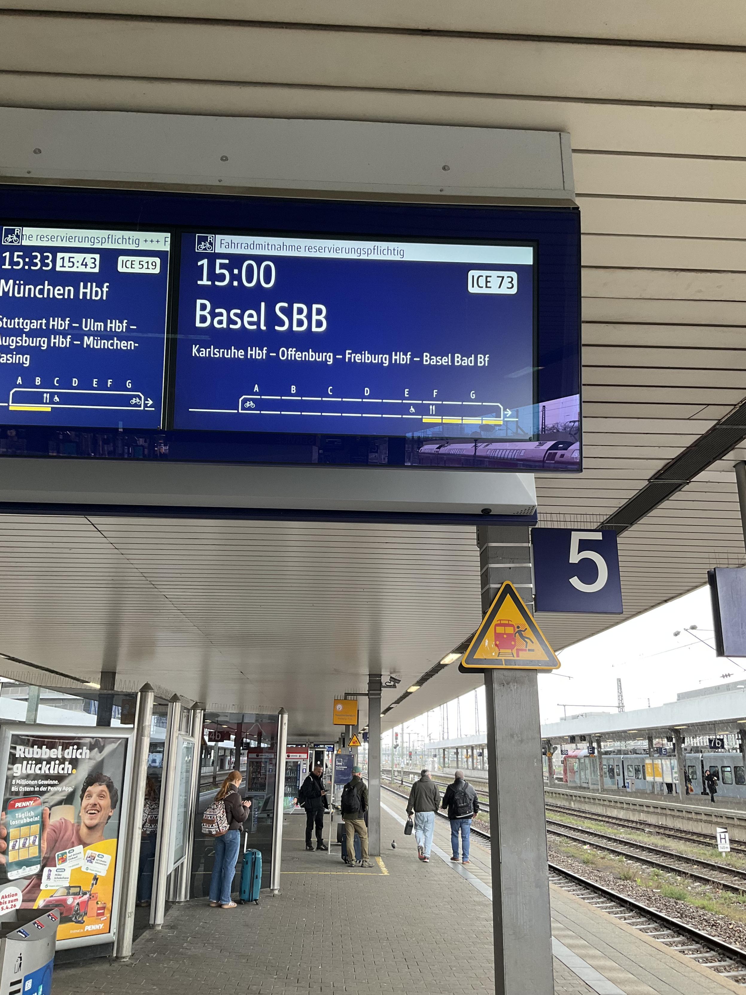 Luckily, #ICE73 did NOT sit there for 7 minutes (as predicted by the SBB app), but arrived in Basel SBB with a delay of only 1 or 2 minutes.