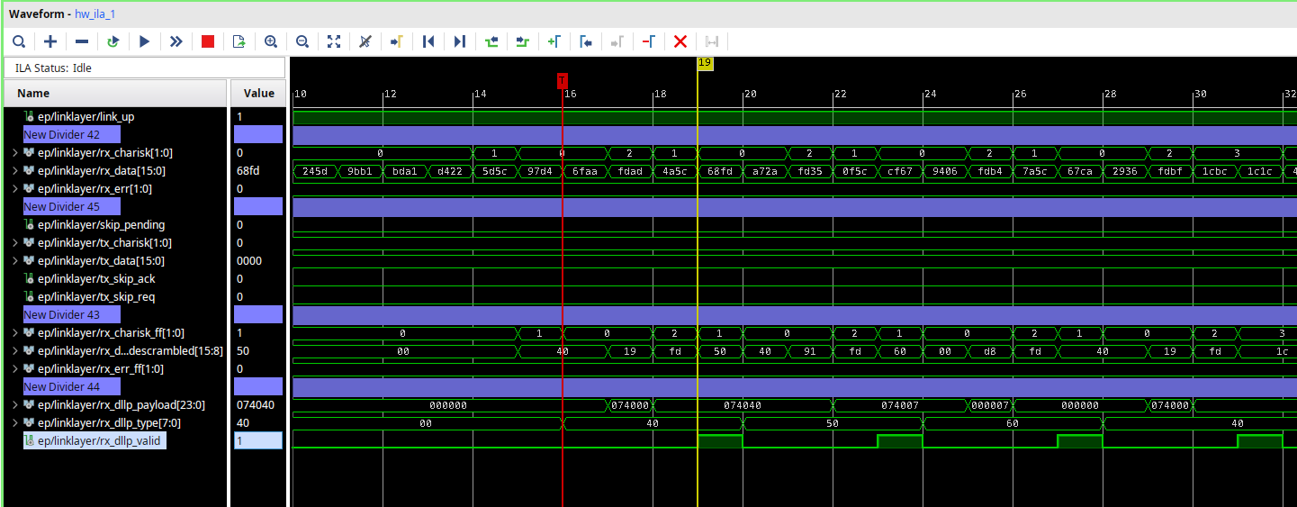 Next step will be to figure out that a type 0x40 DLLP with payload 074040 is actually an InitFC1-P DLLP for virtual circuit 0 for 29 headers and 1024 data bytes.