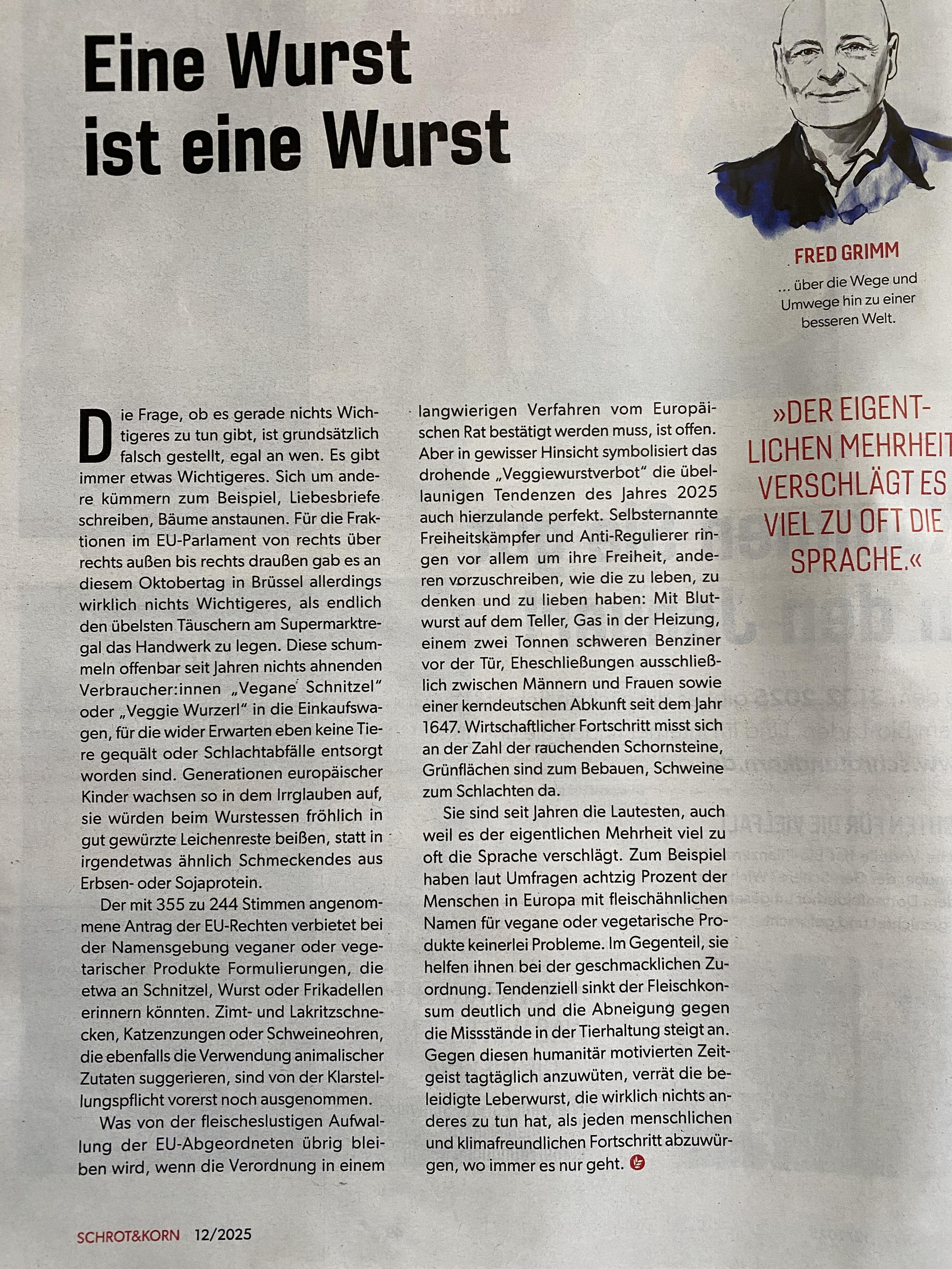 Jeder Satz ein Treffer! Fred Grimm in der aktuellen SCHROT&KORN