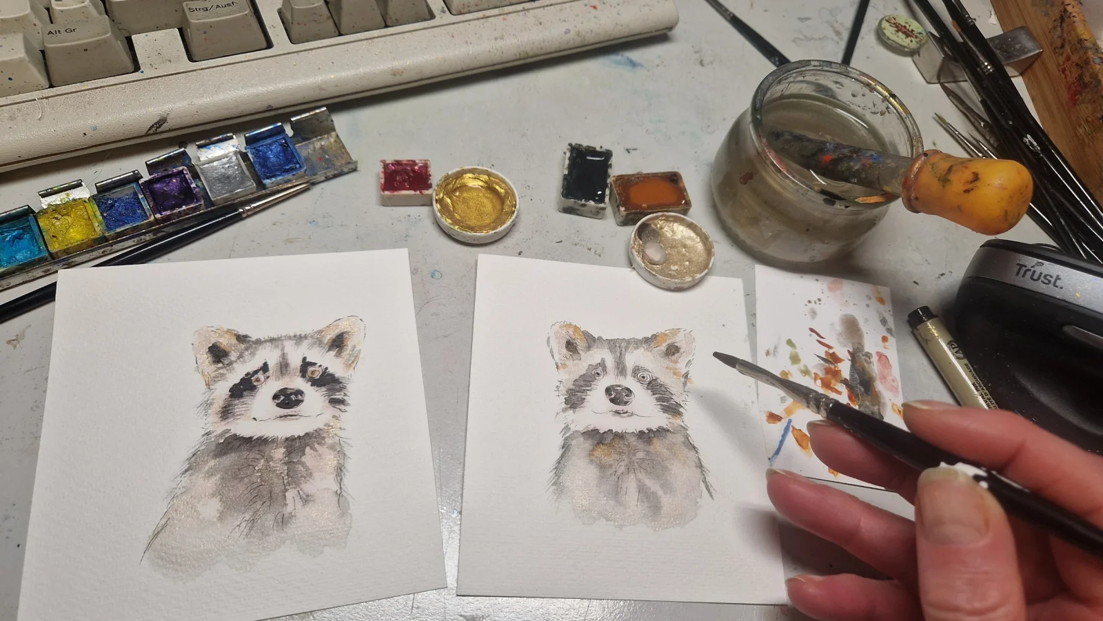 (heute beides jeweils im Original im #klexadventskalender zu finden auf #mammals #art #artShop #racoon #fediArt #mastoArt #creativeToots #artForSale