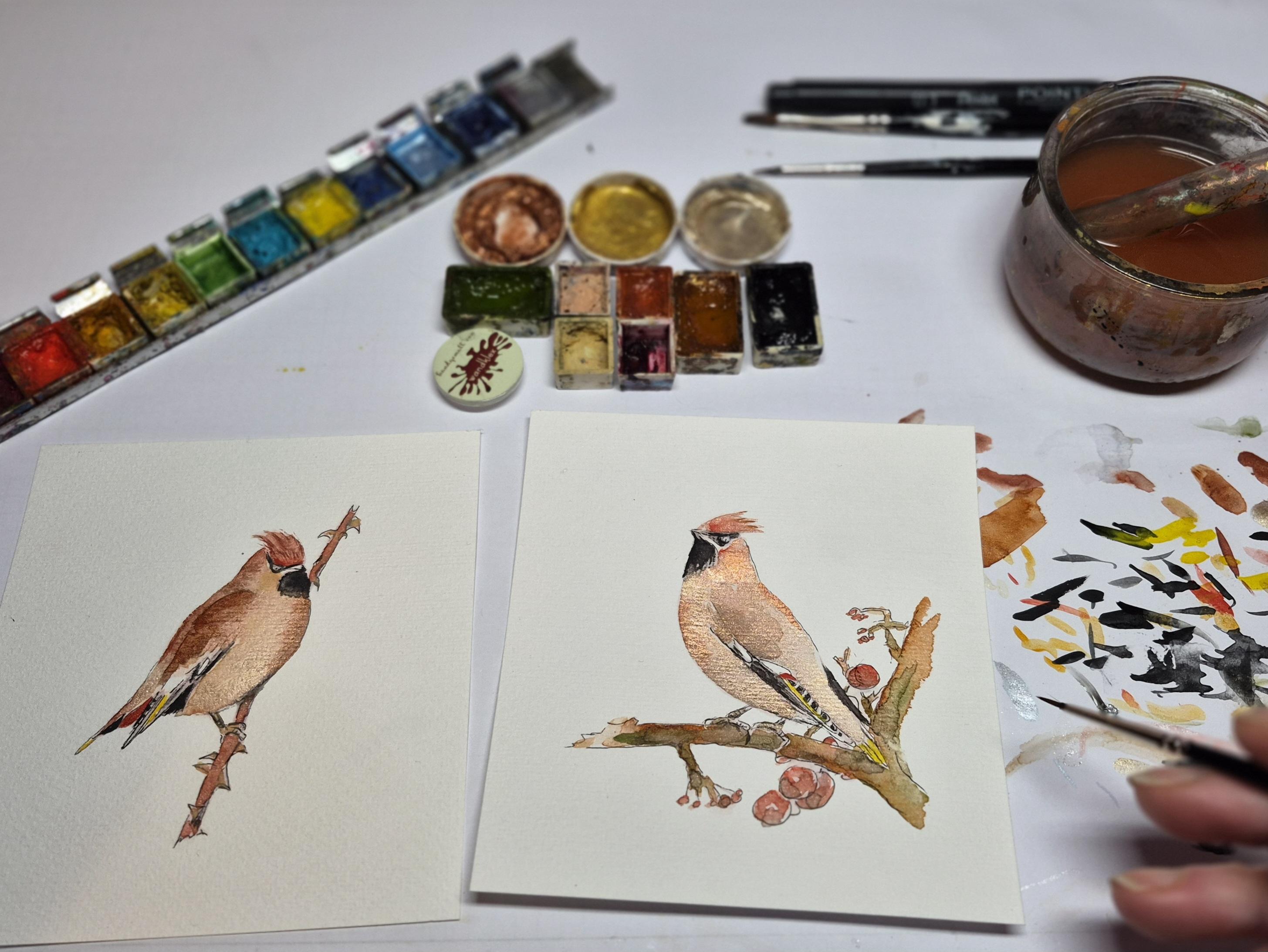 #birds #miniaturepainting #watercolor #fediart #mastoart #creativeToots
