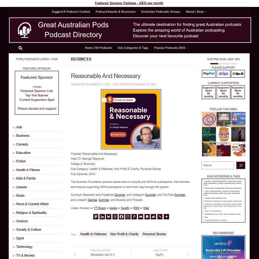 Great Australian Pods Podcast Directory: https://www.greataustralianpods.com/reasonable-and-necessary/