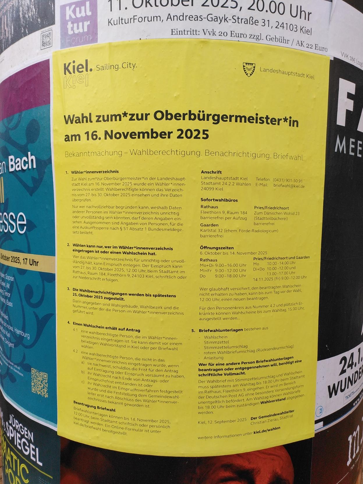 Moin #Kiel, Briefwahl könnt ihr jetzt schon machen. Sonst sehen wir uns am 16. November an der Urne. #OBWahlKiel