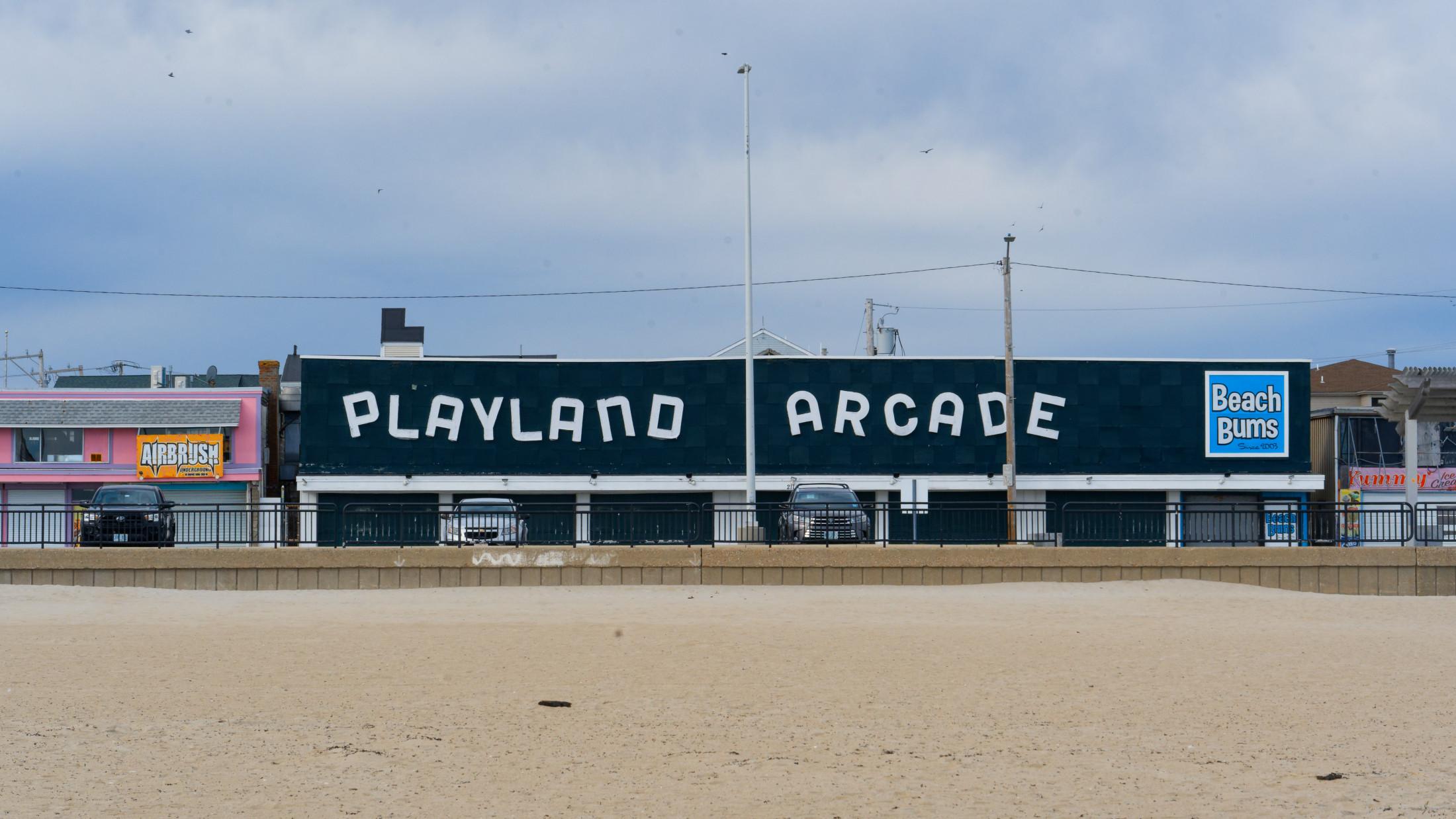 Playland arcade at Hampton Beach, NH boarded up for the off season