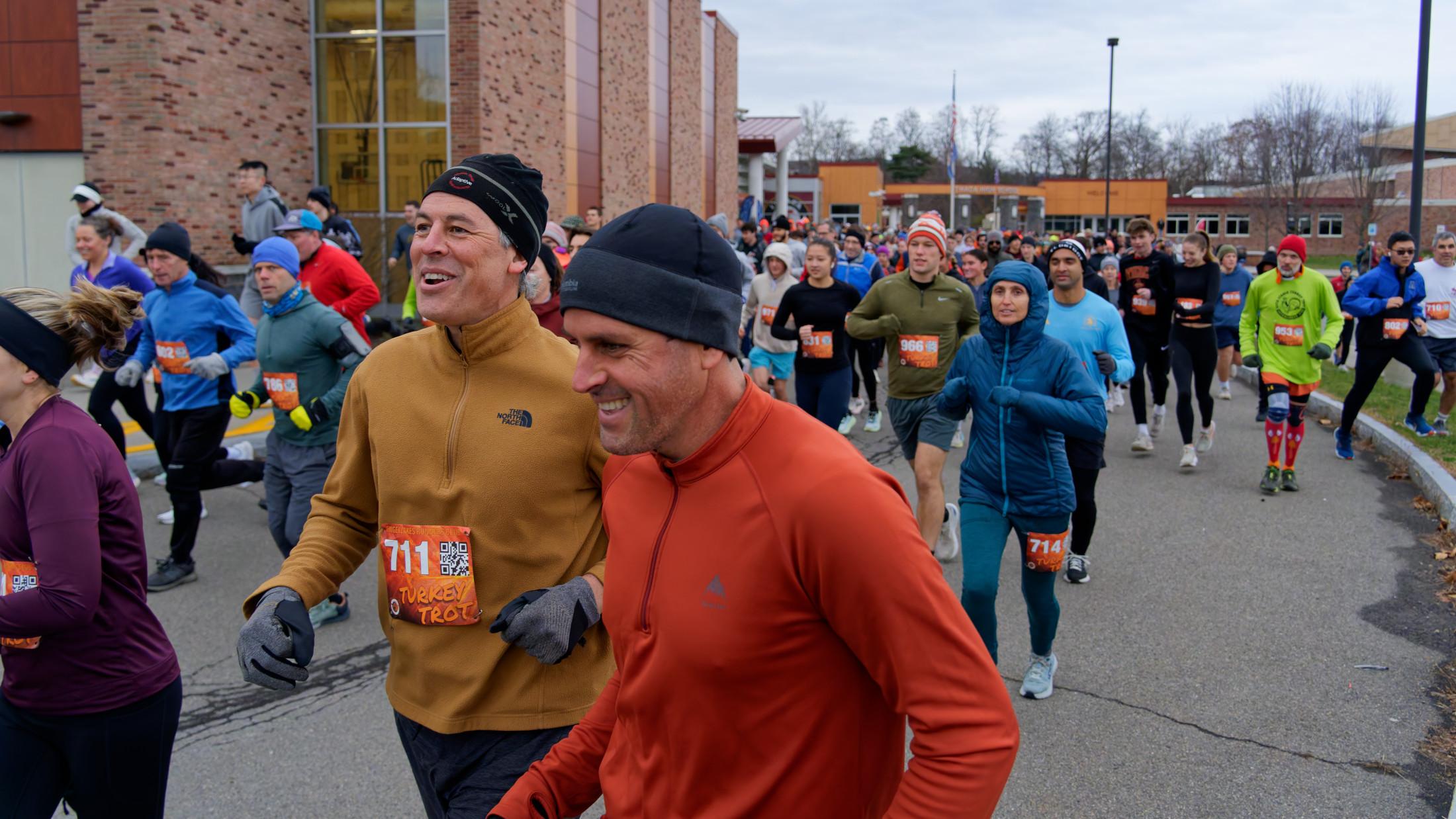 The Turkey Trot to fund Loaves and Fishes got off to a chaotic start with the crowd overflowing the parking lot and surrounding my position