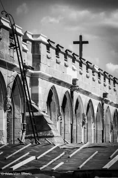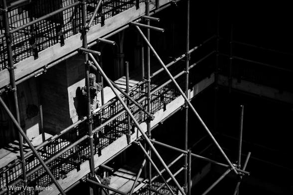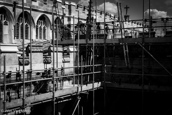 Rooftop with scaffolding, St Mary Magdalene, Newark-on-Trent, August 2025
