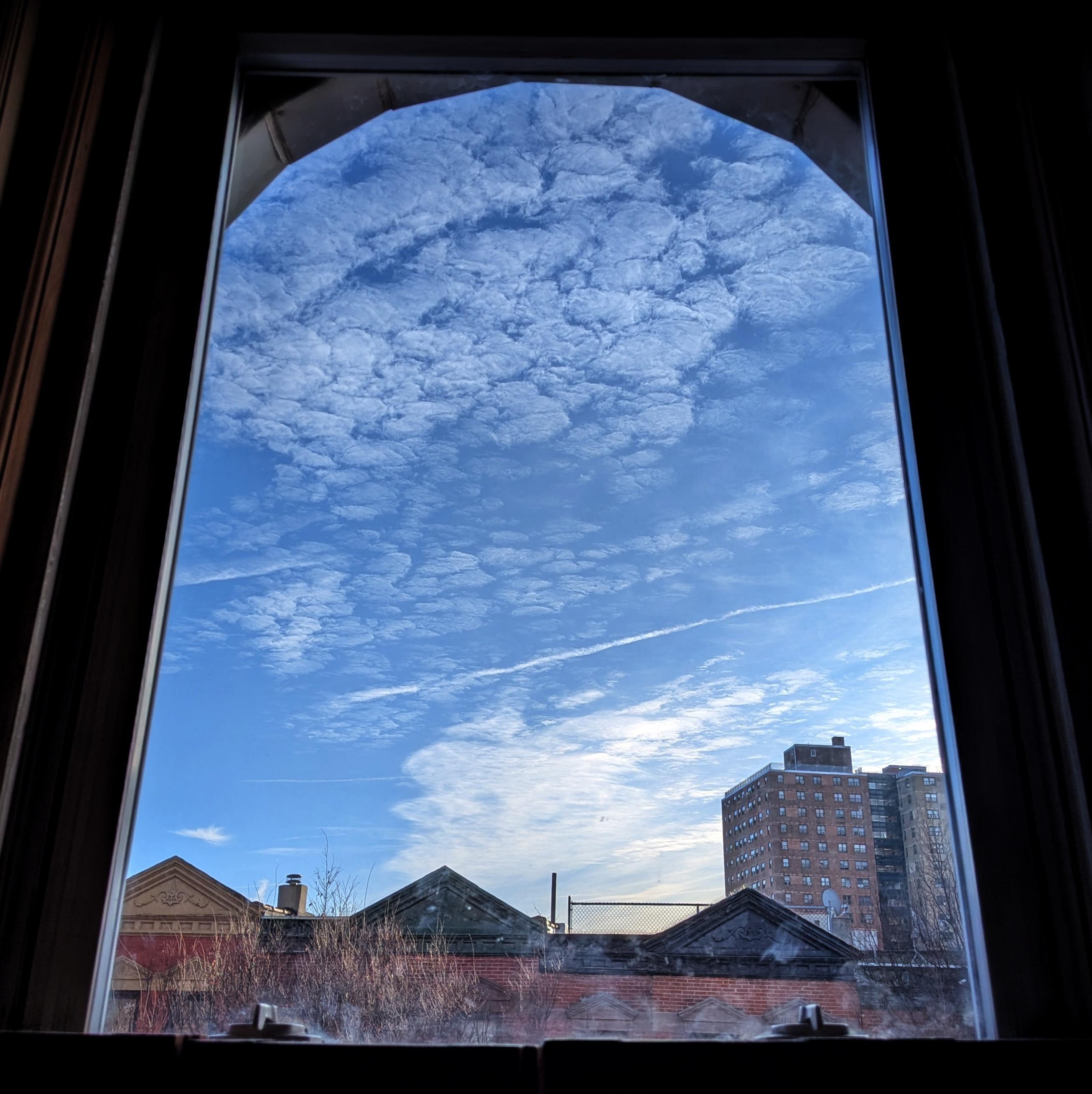 The second floor and up in Upson have lobbies on the side of the building facing Hoy road: that curved building in the center is Rhodes Hall where you can find my den-away-from-my-den