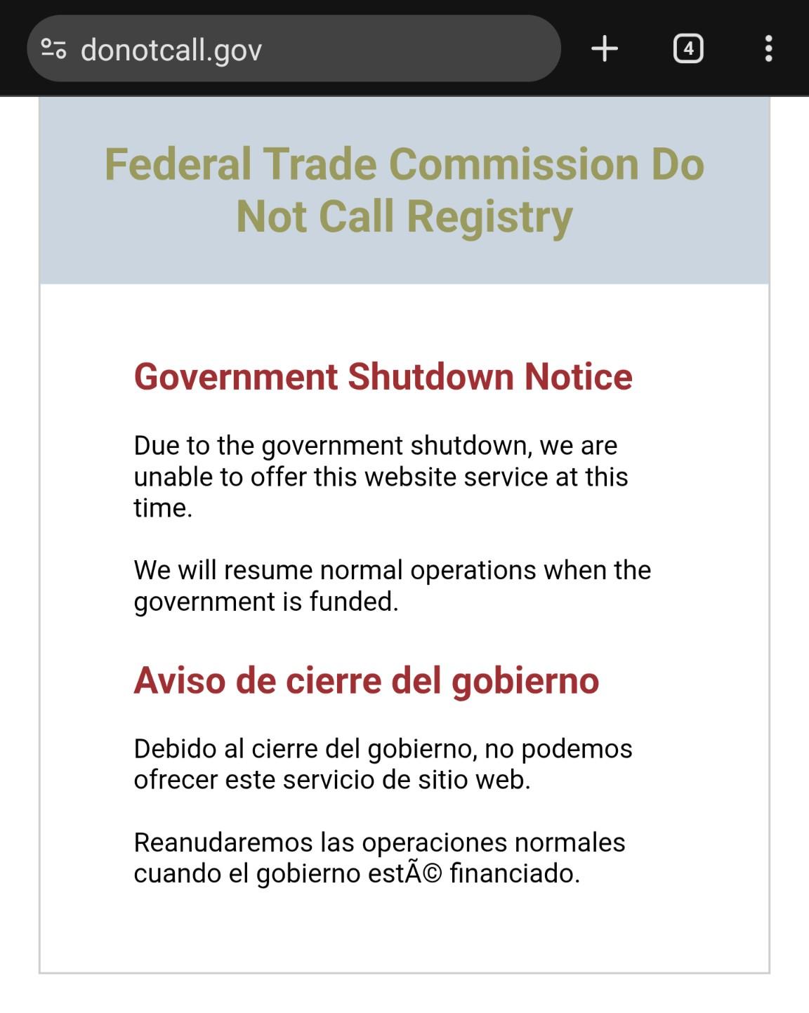 The US phone #spam-reporting site is off during the government shutdown 🤦