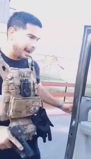 Fascist Paramilitary abducts parents out of car in front of their kid, then repeatedly shoves the kid (a minor) while he tries to document the act. [Texas]