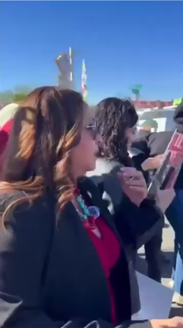 Fascist Paramilitary invaders fire a pepper ball at a sitting member of Congress, Rep. Adelita Grijalva December 5, 2025 (Tucson, Arizona)