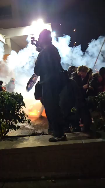 Fascist paramilitary invaders unload chemical munitions on peaceful protesters from the safety of their hideout (Portland, OR - 02/01/2026)