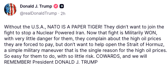 But #TheAmericanFascist is not interested in friendship. He only wants loyalty and fealty. He’s not getting it. On that, NATO is right.