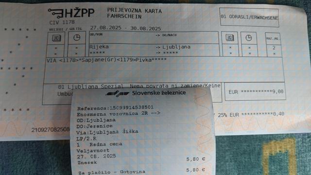 In #Slowenien und #Kroatien ist die #Bahn noch günstig: von Rijeka bis zur österreichischen Grenze um € 14,80 - inklusive natürlicher Klimaanlage: es gab im D Zug noch Waggons mit öffenbaren Fenstern zum Rausguc…
