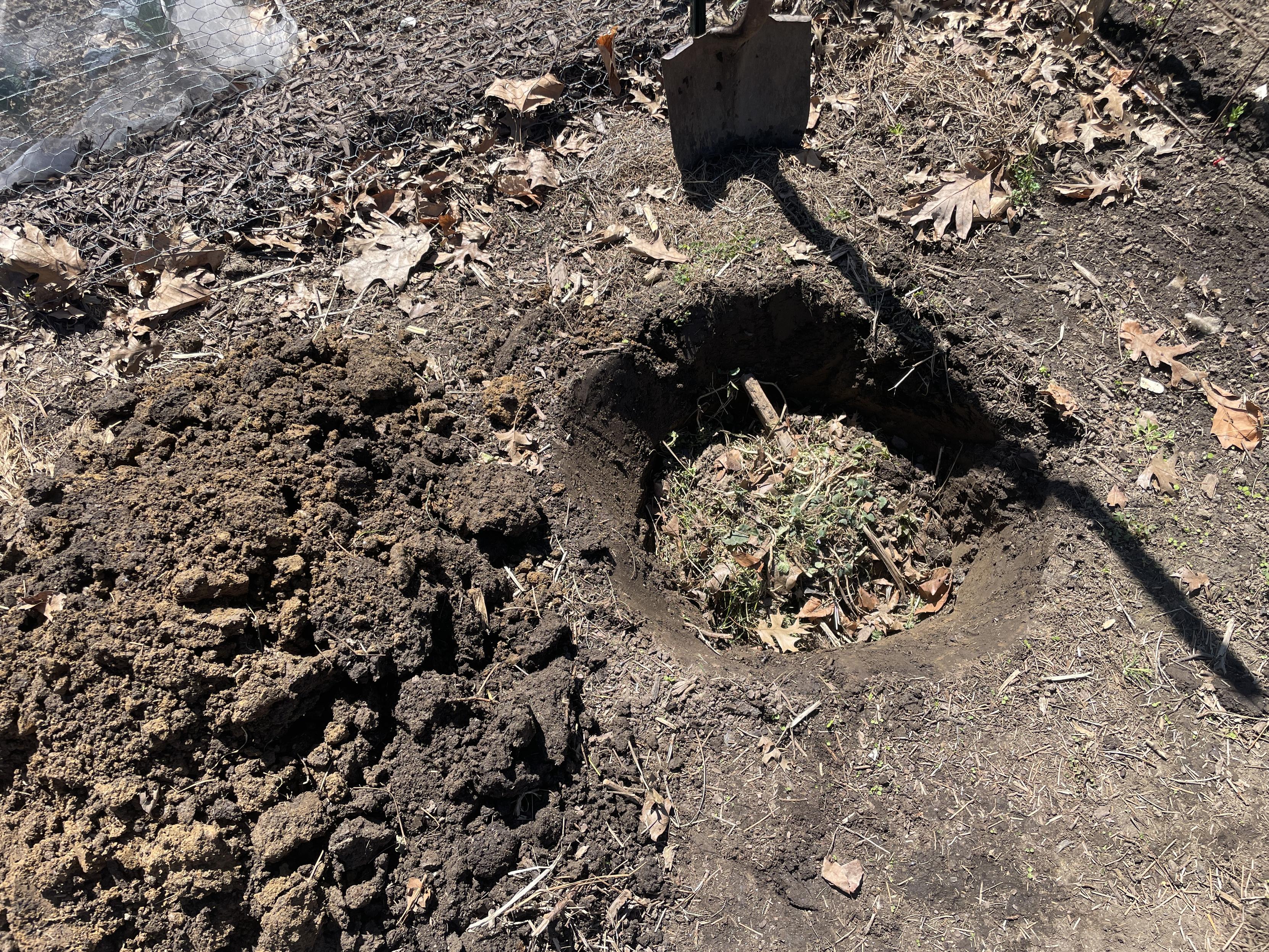 Dug a new weed pit at my allotment this morning. The victims spend a week or so drying out, then get buried. I've been doing this for years and the soil is slowly getting better. #allotment #gardening #weeds #weeding #composting #soil
