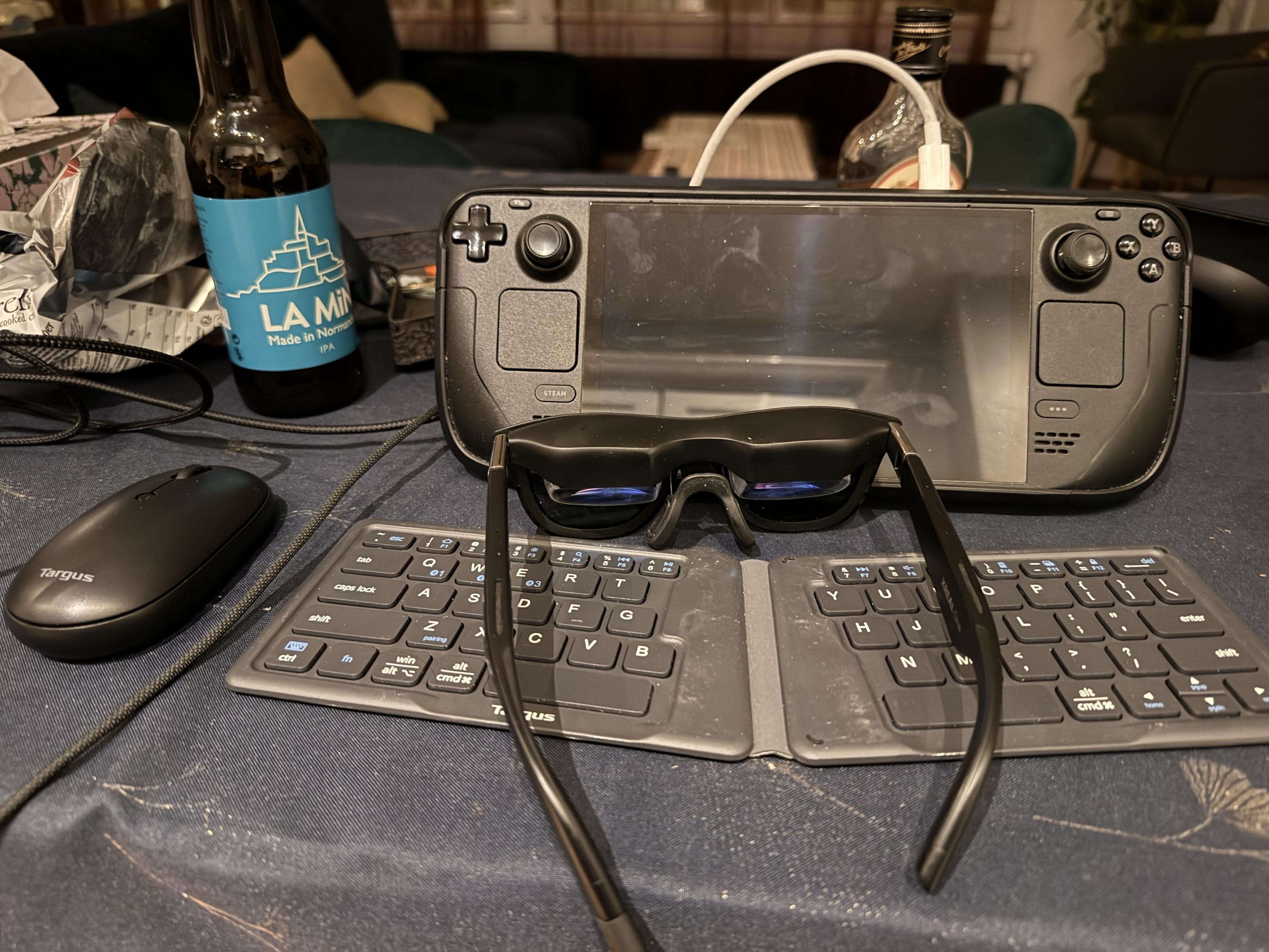 Pretty happy with my Easter vacation hacking setup. #steamdeck #xreal #targus #ipa