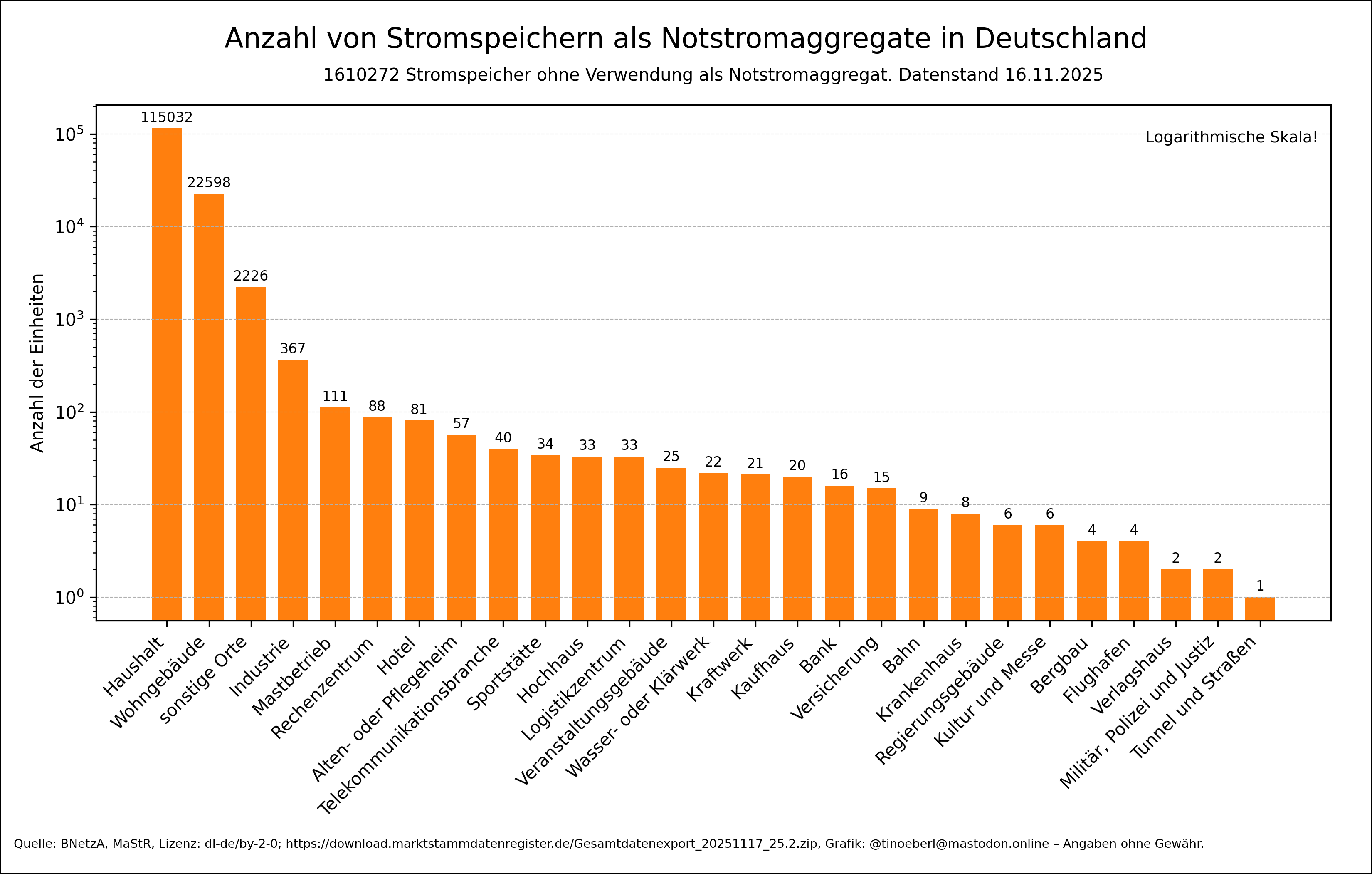 Anzahl von #Stromspeichern als #Notstromaggregate in #Deutschland mit Stand vom 16.11.2025.