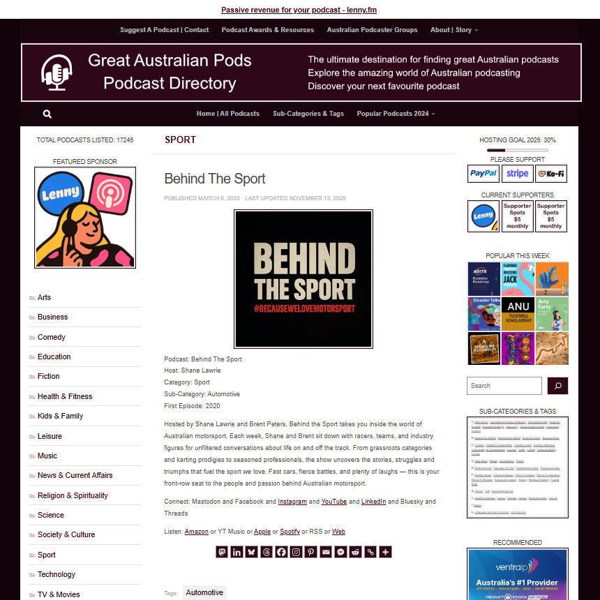 Great Australian Pods Podcast Directory: https://www.greataustralianpods.com/behind-the-sport/