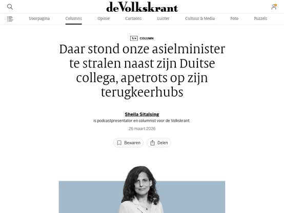 Uw wekelijse Sheila: Daar stond onze asielminister te stralen naast zijn Duitse collega, apetrots op zijn terugkeerhubs | de Volkskrant