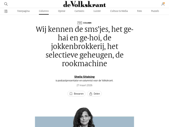 Uw wekelijkse Sheila: Wij kennen de sms’jes, het ge-hai en ge-hoi, de jokkenbrokkerij, het …