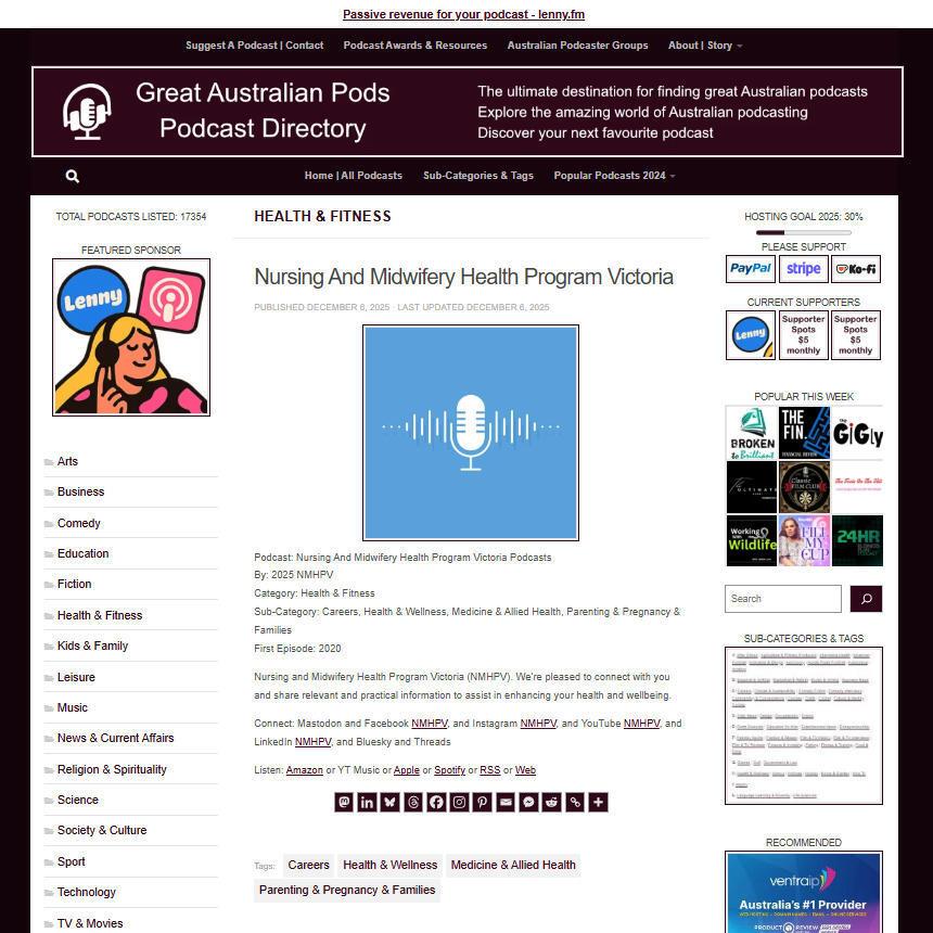 Great Australian Pods Podcast Directory: https://www.greataustralianpods.com/nursin
