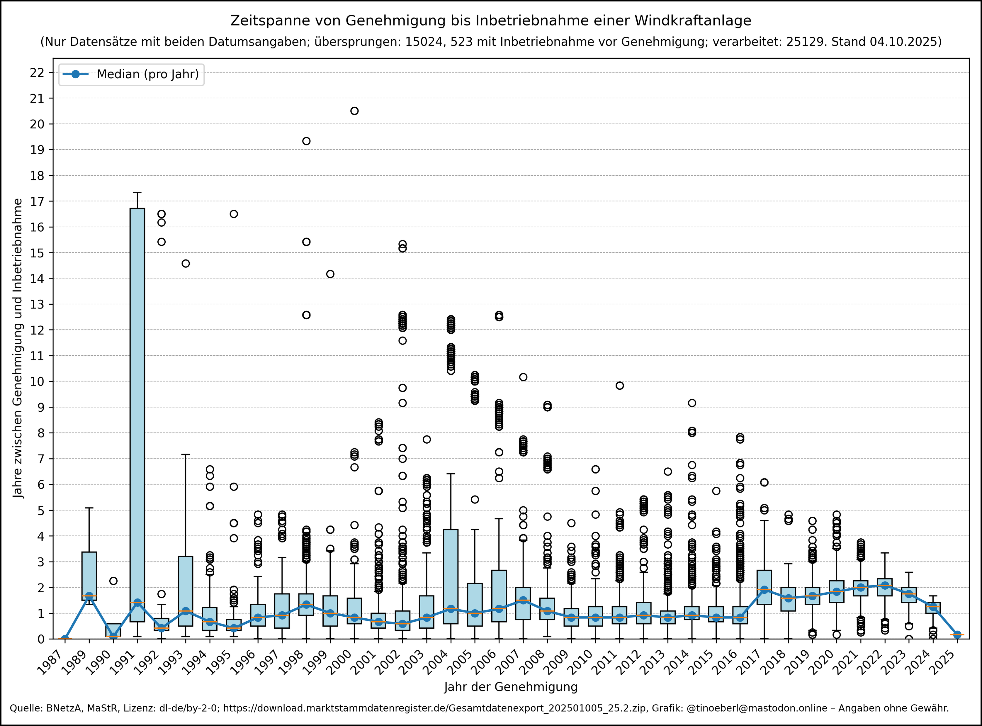 Zeitspanne von Genehmigung bis Inbetriebnahme einer #Windkraftanlage.