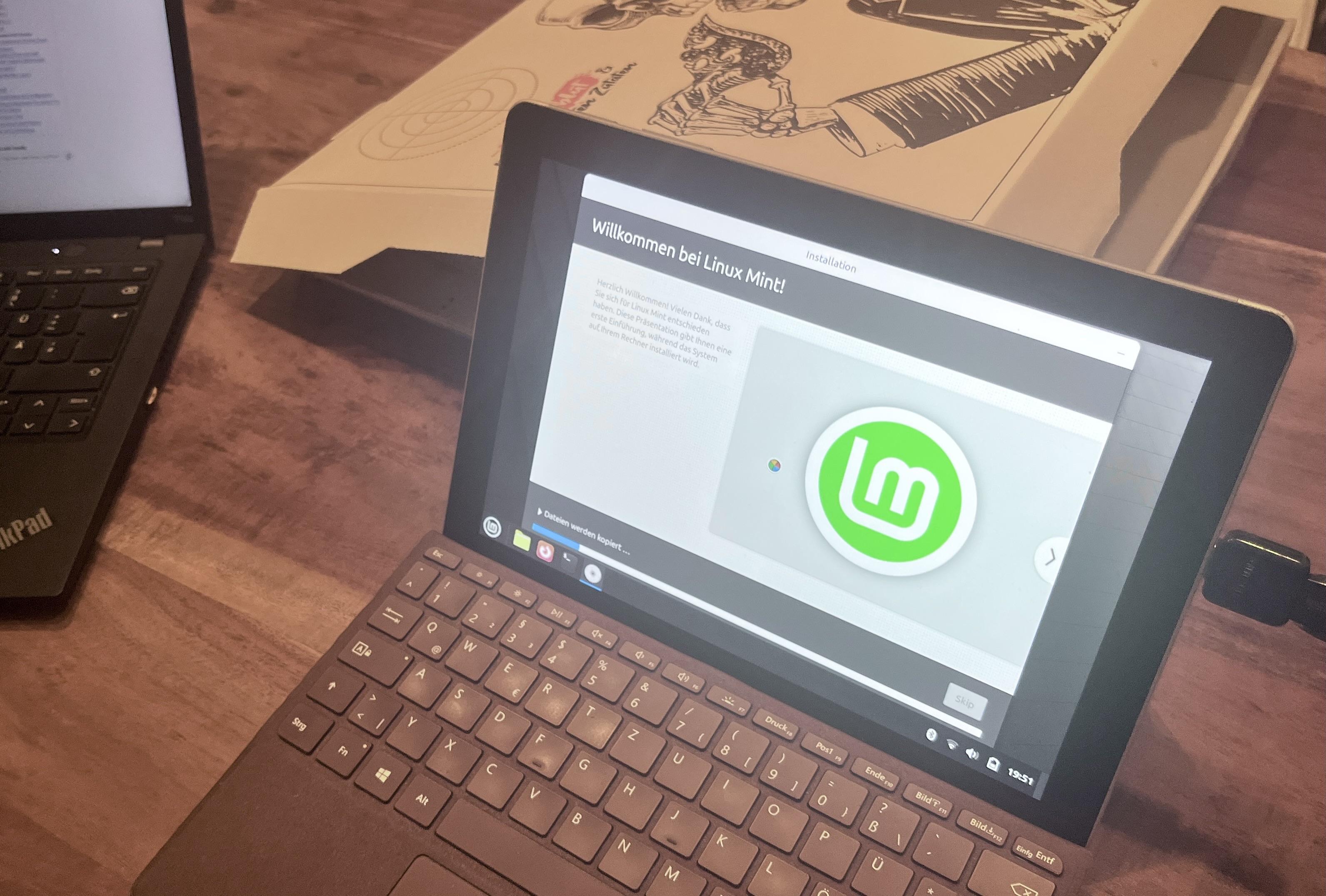 Dann kam @… um die Fotos auf meiner Speicherkarte zu retten und hat nebenher unserem Surface das Linux aufgespielt.