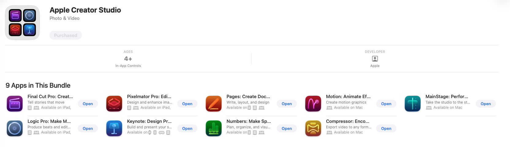 But the original “iWork" apps are still free. Pages, Keynote, Numbers (and by extension iMovie though it is not included in the "Creator Studio” presumably because it ships with every Mac)